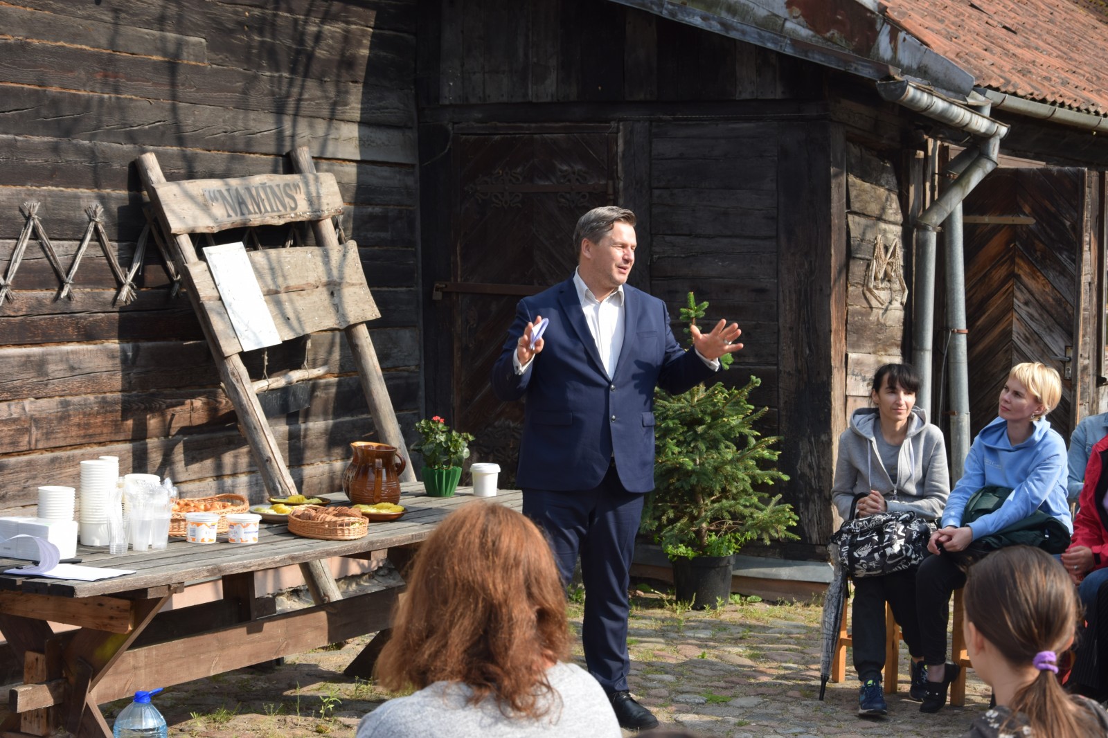 Pasākuma saimniece, biedrības “Patvēruma “Drošās māja”” Kurzemes koordinatore Līga Krēsliņa bija sarūpējusi vairākus priecīgus pārsteigumus pirmsjāņu noskaņā. Uzstājās folkloras ansamblis “Atštaukas”, notika ekskursija pa vēsturisko Hoijeres kundzes viesu namu. Un vēl ilgi Liepājas vēsturiskā kvartāla pagalmā notika draudzīgas sarunas, ēdot bezgala garšīgu, turpat pagalmā uz dzīvas uguns vārītu zupu un Jāņu sieru.